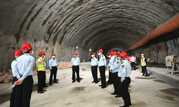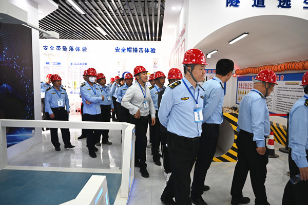 觀摩團一行來到隧道洞口的安全教育VR體驗中心,觀看了高空墜落、物體打擊、觸電、坍塌和洞內(nèi)事故等場景模擬,直觀感受違章作業(yè)帶來的直接傷害。在隧道施工現(xiàn)場,觀摩團認(rèn)真聽取了現(xiàn)場負(fù)責(zé)人對工程概況及項目進(jìn)展的情況介紹,對營嶺隧道項目質(zhì)量安全管理工作以及階段性成績給予充分肯定,并就隧道施工新技術(shù)應(yīng)用、山區(qū)高速品質(zhì)提升等方面進(jìn)行了交流討論。