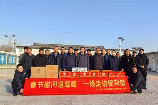春節(jié)慰問送溫暖,一線走訪促和諧。在S22天天高速安慶至潛山段、皖河新港一期、長風(fēng)港鐵路專用線、望湖攬勝等12個(gè)在建重點(diǎn)項(xiàng)目施工現(xiàn)場,集團(tuán)領(lǐng)導(dǎo)親切慰問了堅(jiān)守崗位的職工,并送上牛奶、水果等慰問品,現(xiàn)場叮囑相關(guān)負(fù)責(zé)同志,要經(jīng)常性了解職工的生活冷暖,幫助他們切實(shí)解決實(shí)際困難和后顧之憂。其間,集團(tuán)領(lǐng)導(dǎo)還詳細(xì)了解了在建項(xiàng)目施工進(jìn)展和節(jié)日期間值班值守情況,要求各單位在扎實(shí)做好后勤保障的同時(shí),切實(shí)把安全生產(chǎn)工作擺在首要位置,及時(shí)排查并消除因低溫天氣可能引發(fā)的各類安全隱患,為節(jié)后快速復(fù)工復(fù)產(chǎn)奠定堅(jiān)實(shí)基礎(chǔ)。