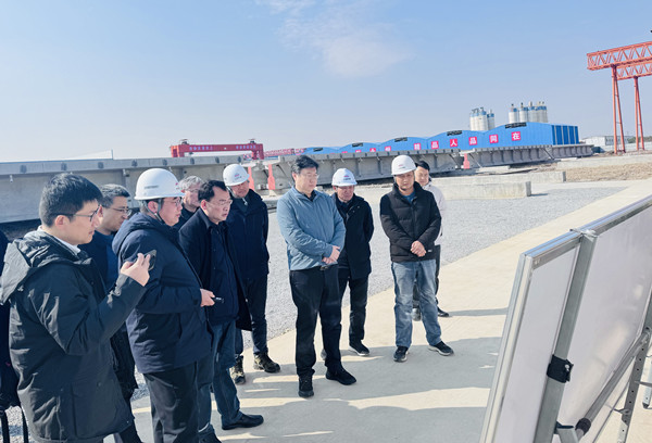 在安慶港長風港區(qū)鐵路專用線項目制梁鋪架基地,調(diào)研組一行現(xiàn)場了解項目整體進展,詳細詢問建設(shè)資金狀況、項目施工進度、燃氣管線遷改以及設(shè)計指標等情況。