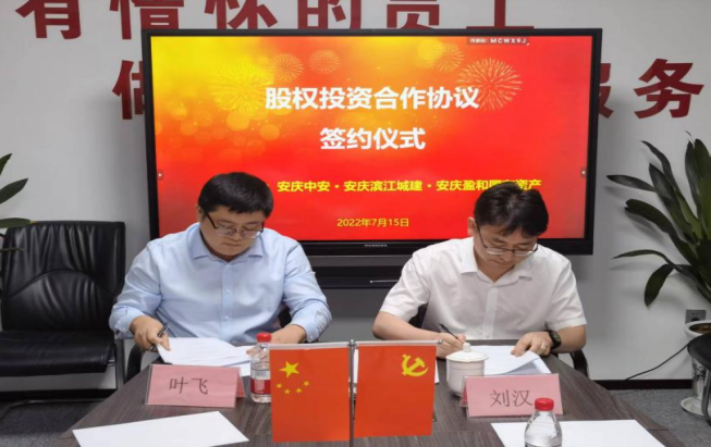7月15日,安慶中安供應(yīng)鏈管理有限責(zé)任公司與安慶市濱江城市建設(shè)發(fā)展有限公司簽署股權(quán)投資協(xié)議。中安公司總經(jīng)理葉飛,濱江公司總經(jīng)理劉漢分別代表雙方公司進行了簽約。