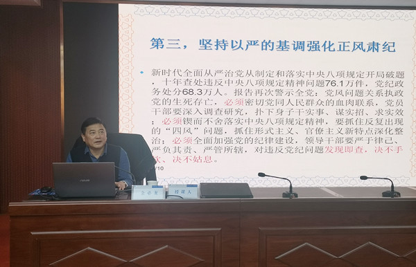 余必龍以《從扣好廉潔從政的“第一??圩印弊銎稹窞轭},圍繞黨的二十大全面從嚴治黨戰(zhàn)略要求,進一步深化八項規(guī)定實施細則,引入典型案例進行剖析,指出黨政機關國企工作人員不可觸碰的紅色底線,以案釋法講述“勿以惡小而為之、勿以善小而不為”,提升干部職工對廉潔價值理念的認同感,警醒全體員工牢記紀律規(guī)矩,知敬畏、存戒懼、守底線,在思想上、工作上、生活上、學習上、監(jiān)督上做到廉潔自律,進一步提高政治站位,從嚴落實中央八項規(guī)定精神, 增強政治自覺,持之以恒正風肅紀,推動廉政教育走深走實、入腦入心,不斷擰緊全員廉潔思想“總開關”,打造風清氣正的廉潔從業(yè)環(huán)境。