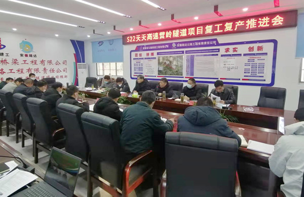 1月30日上午,安通高速公司在 S22天天高速營(yíng)嶺隧道項(xiàng)目部召開復(fù)工復(fù)產(chǎn)推進(jìn)會(huì)。會(huì)議由市交控集團(tuán)總工程師丁振宇主持,集團(tuán)公司黨委委員、副總經(jīng)理孫曉翔出席會(huì)議。